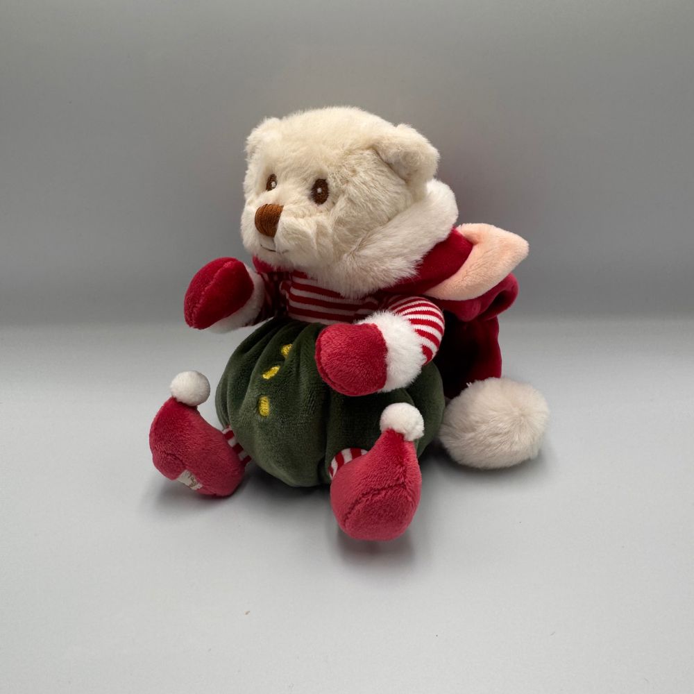 Ziggy Santa’s Little Helper to uroczy biały miś w świątecznym wydaniu, który z pewnością wprowadzi magiczną, bożonarodzeniową atmosferę. Ubrany w strój elfa w czerwono-zielonych barwach, wygląda niezwykle radośnie i przytulnie. Jego kapturek można zdjąć, co dodaje zabawce interaktywności i uroku.